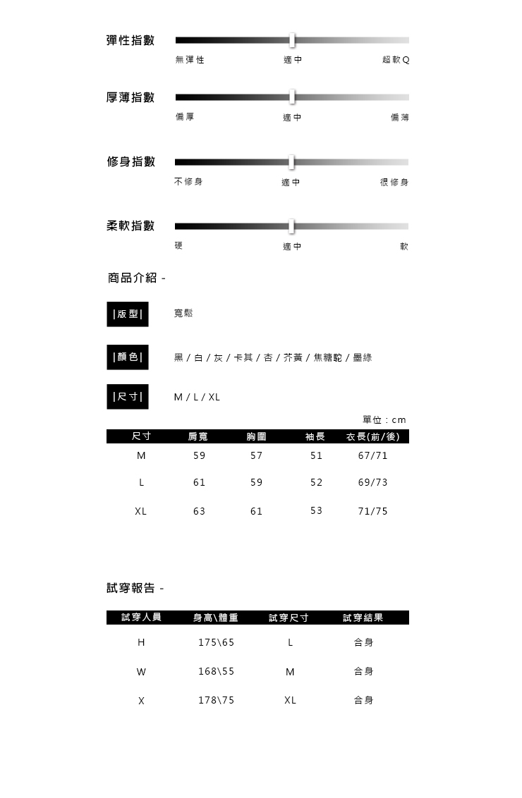 Color : 黑 / 白 / 灰  / 芥黃 / 杏 / 焦糖駝