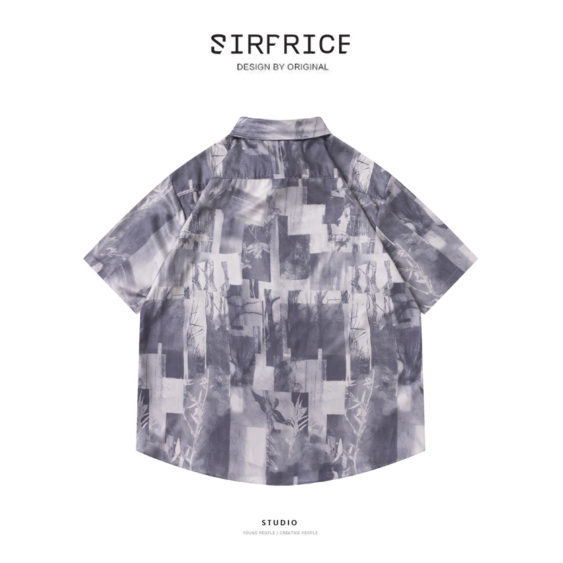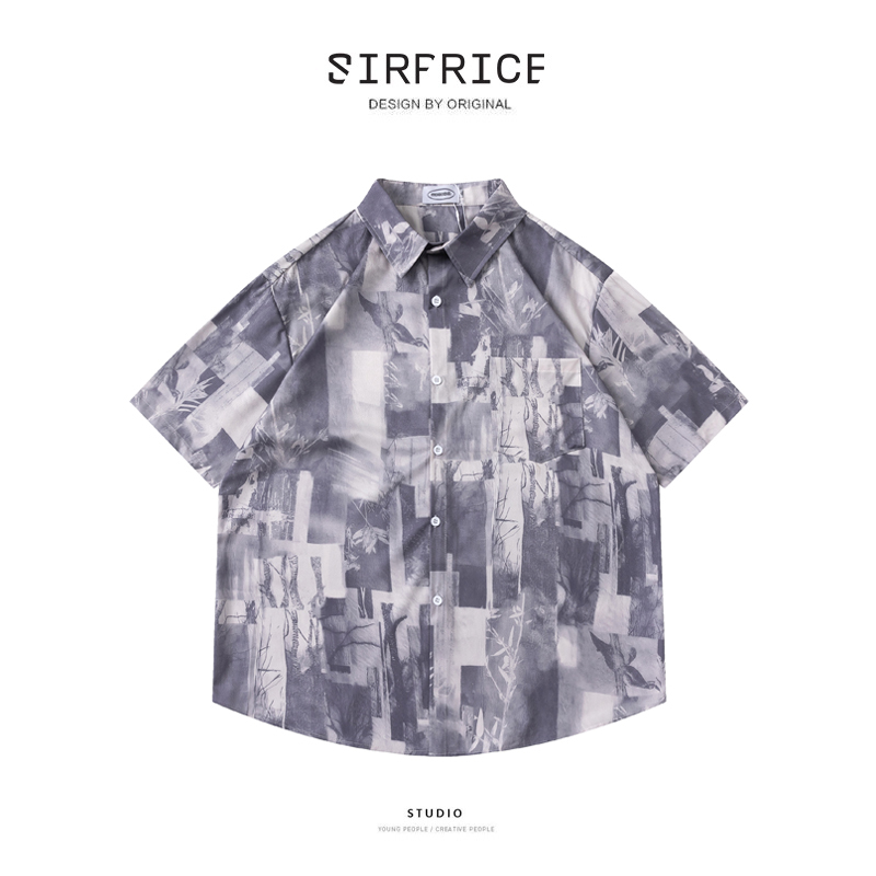 花襯衫 復古襯衫 滿版 黑白照片